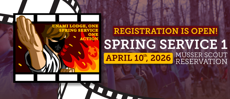 Get ready for Spring Service 1: Weekend in Action, coming to Musser Scout Reservation, April 10–12, 2026. Join Arrowmen from across the lodge for a high-energy weekend where cheerful service meets the excitement of the big screen. Together we’ll tackle projects across camp, prepare Musser for the season ahead, and enjoy action-packed themed program throughout the weekend.